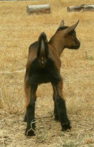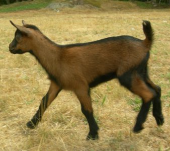 7/16/16. Half-Oberhasli/half-Nigerian. Red bay and black. As Ailia's posthumus daughter, she has big shoes to fill! (Or should I say "hooves"?)