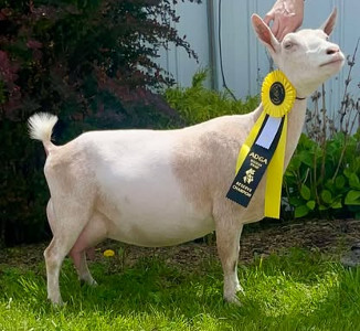 Show wins: ADGA: one junior reserve. Senior wins: 2 times Grand Champion and Best of Breed at Eastern New York Dairy Goat Club in May, 2022; Reserve at same show in 2024; GCH at Heath Fair in 2025. ADGA Linear Appraisal Results: 2021: VEEE 90 2023: EEEE 92 | ||