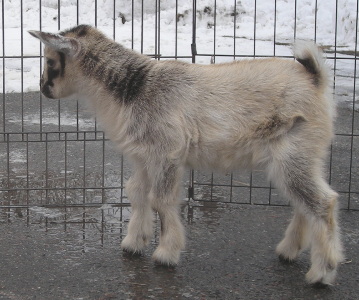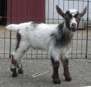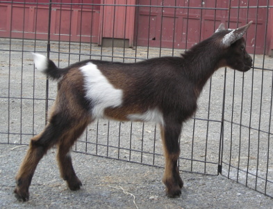 Janeen's doeling, #T26, chocolate buckskin and white. Born 8/2/25. Dragonfly Jack Sparrow x Fairlea Janeen. More pictures here. Sold.