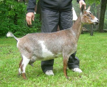 Dragonfly RY Stonewall Jackson x ARMCH Fairlea Troy. Roaned chamoisée-and-white doe, born 2/22/15, a singleton.