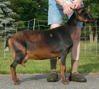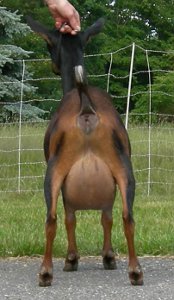 Flat Rocks Night Raven x ARMCH Fairlea Gretchen. Polled, black-and-mahogany buckskin, born 3/15/09, a quad.