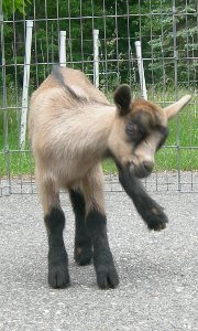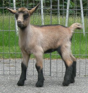 Dragonfly RY Stonewall Jackson x Seraiah Farm's Ailia: a twin (buck/doe) Born 5/30/14. Chamoisée doe, tattoo BC3/E18.   Pictures at 2 weeks: