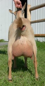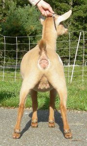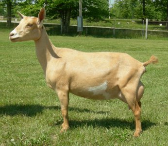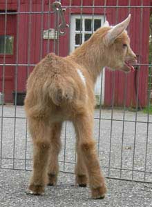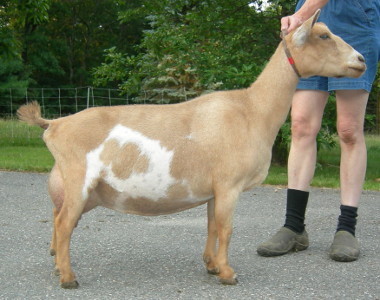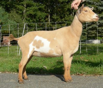 Fairlea Jean Valjean x Greenville Acres Ester. Gold and white, born 4/16/10, a triplet.