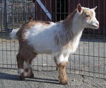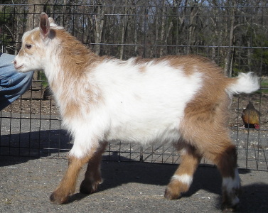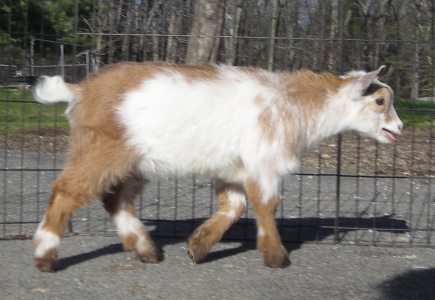 Dragonfly Jack Sparrow x Fairlea Enya: Single buck. Born 2/27/25. Pictures at 7 weeks old.   T2 buck, gold and white