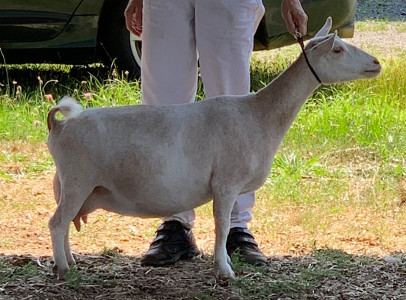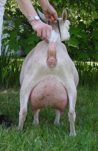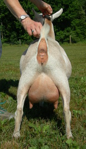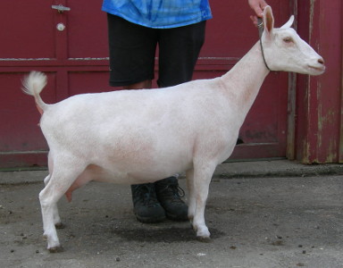 | 2021, Second freshening - her udder was very uneven but looks great from the side. |