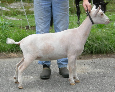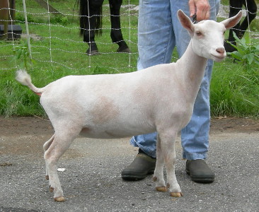 | Esmeralda as a yearling (2019). Unfortunately, very overweight (her mother, SGCH Eleanor, had a LOT of milk). |
