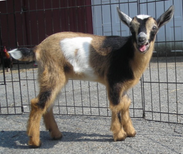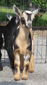Dragonfly Jack Sparrow x Fairlea Freya: Twin does. Born 5/24/25. Pictures at 2 1/2 weeks old.   T24 doe, black and white T24 doe, buckskin and white