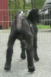 Dragonfly RY Apache Tears x GCH Fairlea Amaryllis. Black-and-white frosted doe, born 4/30/15, a triplet.
