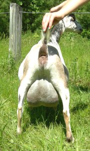 | Later in 2010. Way too much space between her hind legs, but watch what she does with it in a few years. |