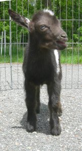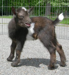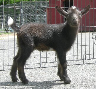 Born 5/19/14. Polled chocolate repartita buckskin doe #E12.