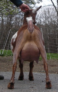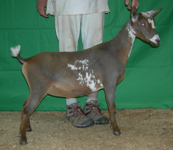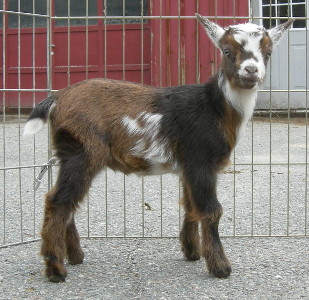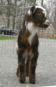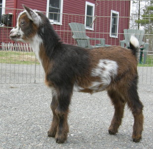 Dragonfly Cappriccio x Fairlea Phoebe B Beebee. Chocolate buckskin and white with frosted ears and nose, born 3/21/20, a triplet.