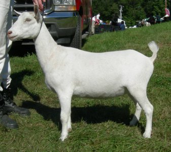 Fairlea Siegfried x GCH Fairlea Linnet. White doe, born 3/10/15, a twin.