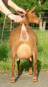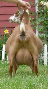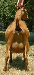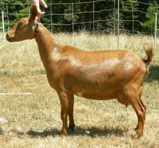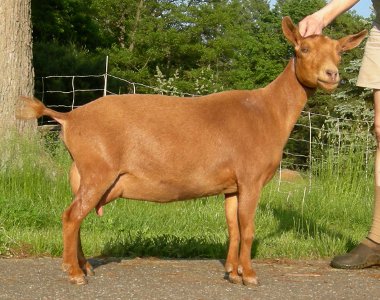 | Solid red, born 6/9/09, a triplet. Pictures from summer, 2011, her first freshening. Show Wins: 1 ADGA Senior Reserve | ||