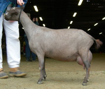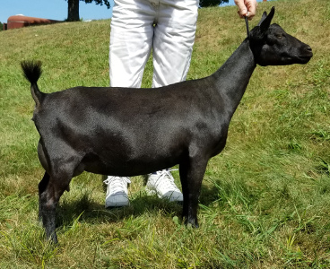 She only had one doe kid, so she isn't producing much milk. She now lives with the Goulds at Sisters Three Farm in Mendon, MA.   Show wins: Only shown once so far, as a yearling, when she won her ADGA Junior Grand Champion leg. ADGA Linear Appraisal Results: 2017: ++E+ 82 - Karen Smith | ||