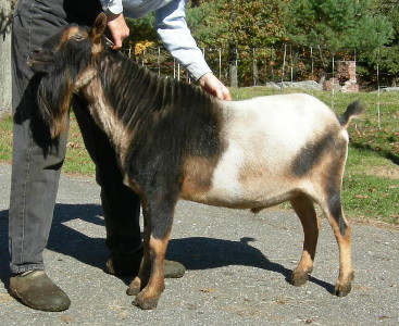 Fairlea Jean Valjean (PromisedLand Incredible Hunk *S X ARMCH Fairlea Fleur) 4/27/07 - 12/10/09 Dark buckskin and white, a quadruplet. Sweet, friendly, easy to handle, striking appearance, beautiful legs and feet, overall a lovely boy. Sadly, he died suddenly in December, 2009, and we don't know why -- the autopsy revealed nothing. |