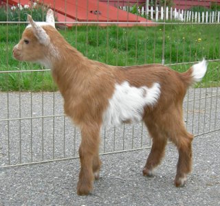 4/9/12 - 10/3/14   Fairlea Hector *B *S X ARMCH Fairlea Troy *D E, *M   Hector's page   Gold and white, a twin. Sadly, we lost Hector shortly after he came back here. Autopsy showed poisoning, although there was nothing he could have gotten into unless something was in the hay or blew into the buckpen. He was sold as a kid but came back recently and I was looking forward to seeing what he could produce. I didn't even have a chance to get a picture of him as an adult. I am seeing a pattern here: Fairlea Jean Valjean died the same way, same timing right after he came home as an adult, and it is becoming clear from these and other poisonings I have seen that experienced goats and sheep tell inexperienced ones which plants are safe to eat - but they withhold that information from strangers or little kids that are not their own offspring. |