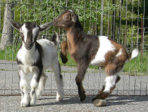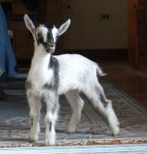 All goats are dual registered with AGS and ADGA, and the senior does are on milk test through the Langston DHI lab under the auspices of AGS and ADGA. All adult goats are blood tested for CAE, Johne's, and CL on a regular basis (about every three or so years), and all new animals are quarantined and tested for those diseases, and for Brucellosis and TB as well. December, 2009, test results from Washington Disease Diagnostic Lab: all goats tested for CAE, CL, and Johnes; all sheep for CL and Johnes; the llama for Johnes -- all negative. April, 2011, all goats tested for CAE, CL, and Johnes -- all negative. January, 2013, all goats and sheep tested for CL and Johnes, goats for CAE and sheep for OPP -- all negative. February, 2016, I didn't have the llama or sheep any more but all goat does tested for CAE, CL, and Johnes -- all negative again. September, 2018, all does and bucks again negative. Follow links for pictures and further information on each goat. Please email or call to discuss prices, reservations, and availability, and to set up appointments to visit. Prices: Wethers (neutered males) are $175 each. Does and breeding bucks are individually priced according to their show potential and the quality of their parents - discounts for multiple purchases of does and breeding bucks. Reservations are $100 for a doeling or buckling, $50 for a wether. I reserve the right to retain for my herd any kid born here. If you reserve a kid before it is born, the price listed on the kidding schedule at that time is locked in. If the doe does not produce enough offspring for the number of reservations, you may choose to have your deposit returned, or to apply it to another available kid. If you decide not to purchase an available kid that you reserved, your deposit is not refunded. Please make arrangements to take posession of the kid in a timely manner; otherwise, there may be board charges. Thank you for understanding and helping to make this process go smoothly. The kids are usually ready to go to their new homes around two to three months old. All kids are handled extensively and partially bottle-fed to make them friendly. When you pick up your kid at two months or older it will be disbudded, tattooed, wormed, vaccinated, and accompanied by a complete health record, and most wethers will already be wethered. Buck kids are generally neutered at two to three months and sold as pets, although I will keep the most promising ones intact as long as possible. Write or call to see what kids are still available as bucks if you are interested. The links in the breeding/kidding tables go to the dams' and sires' pages, and to individual pictures of each kid. Kid pictures are usually taken around a couple weeks after they are born. |